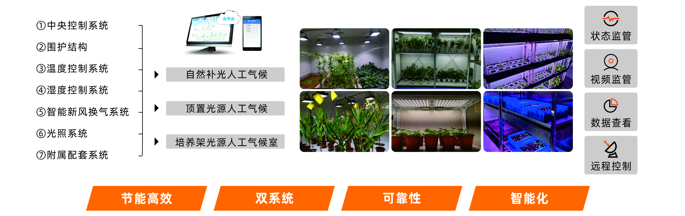 智能控制系统,自带管理云平台和手机APP,实现远程调控、监管人工气候室内环境数据。
